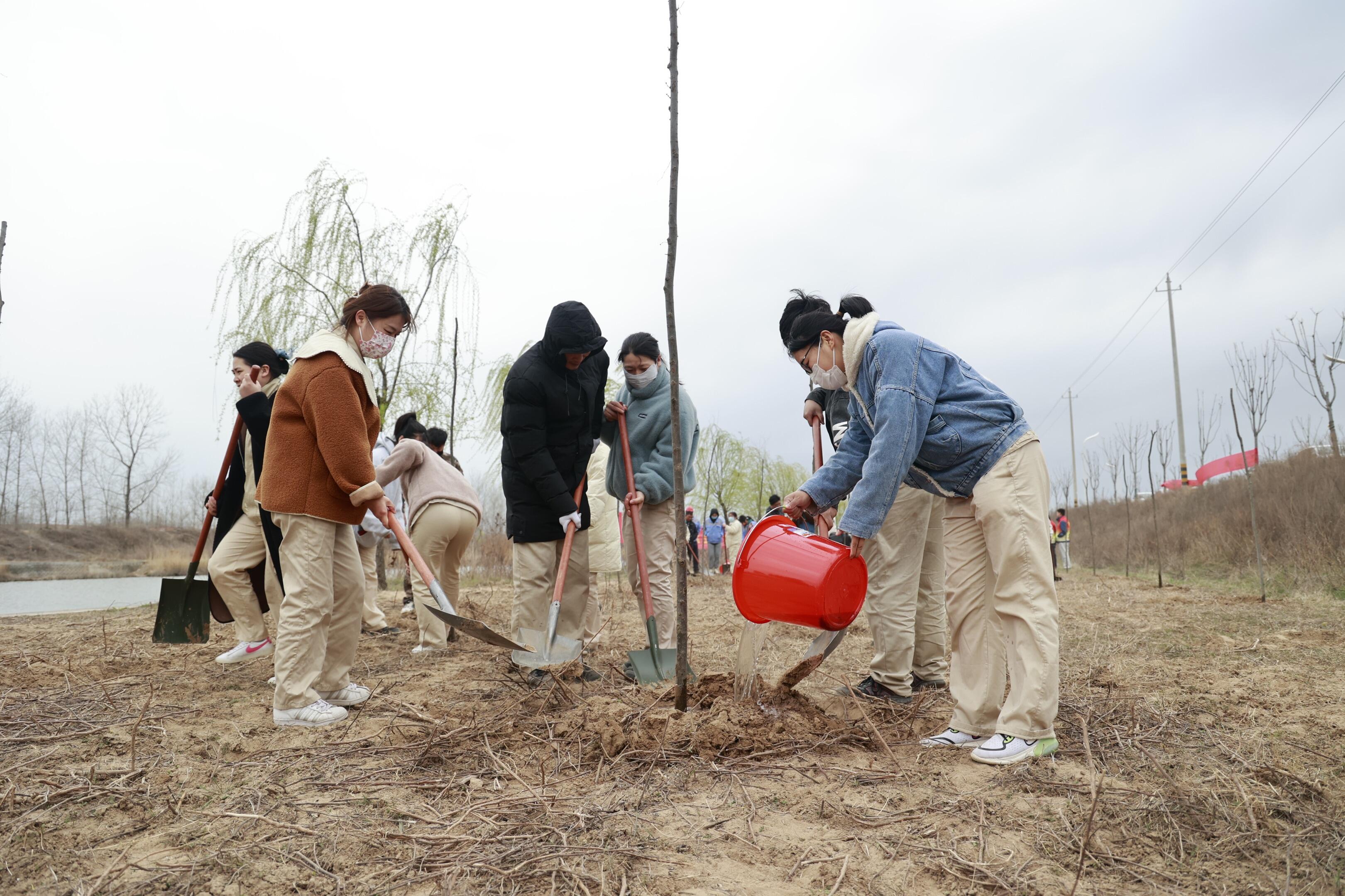 活動中,芮邦科技的員工們個個熱情洋溢、幹勁十足,揮鍬鏟土、踏土夯苗、拎捅澆水。經過一下午的辛苦勞作,一棵棵櫸樹苗迎著和煦的春風在這裏“安家落戶”,展露出勃勃生機。