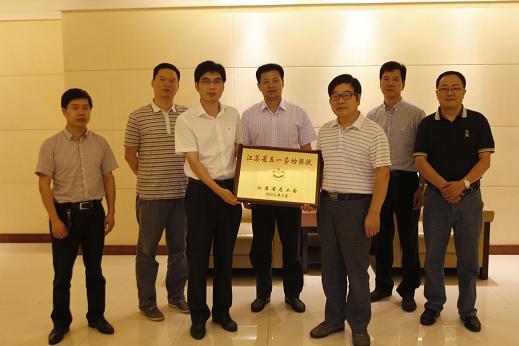7月2日,蘇州市總工會副主席朱正榮來到公司,代表省總工會向集團授予了“江蘇省五一勞動獎狀”獎牌。吳江區總工會主席嚴品華、集團工會主席高蘇健等出席了授牌儀式。