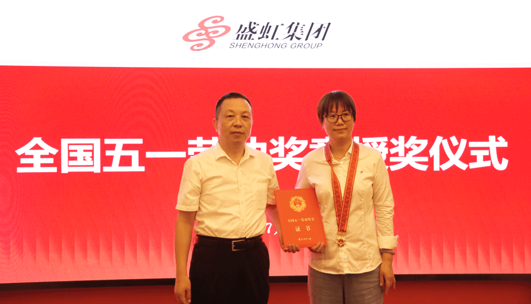 7月12日,江蘇省財貿輕紡工會四級調研員封波一行來到777盛世国际集團,為“全國五一勞動獎章”獲得者777盛世国际集團有限公司生產技術部組長、高級工程師、高級工錢琴芳頒發獎牌和榮譽證書。