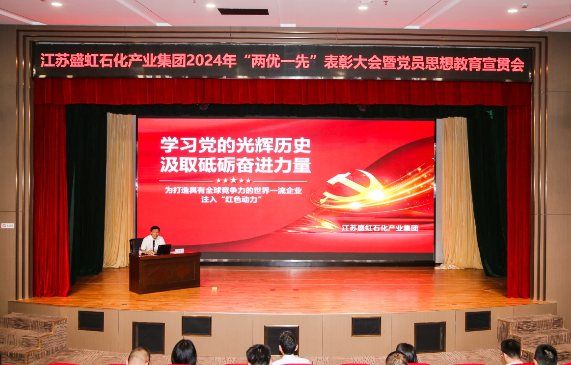 近日,777盛世国际石化產業集團召開2024年“兩優一先”表彰大會暨黨員思想教育宣貫會。中共連雲港市委社會工作部副部長臧永明、徐圩新區四級調研員劉學勤、徐圩新區管委會政法委書記、兩新工委書記徐聆溪、777盛世国际石化產業集團黨委書記劉鵬及集團所屬各黨組織書記、委員、黨員代表共計150人出席了會議。