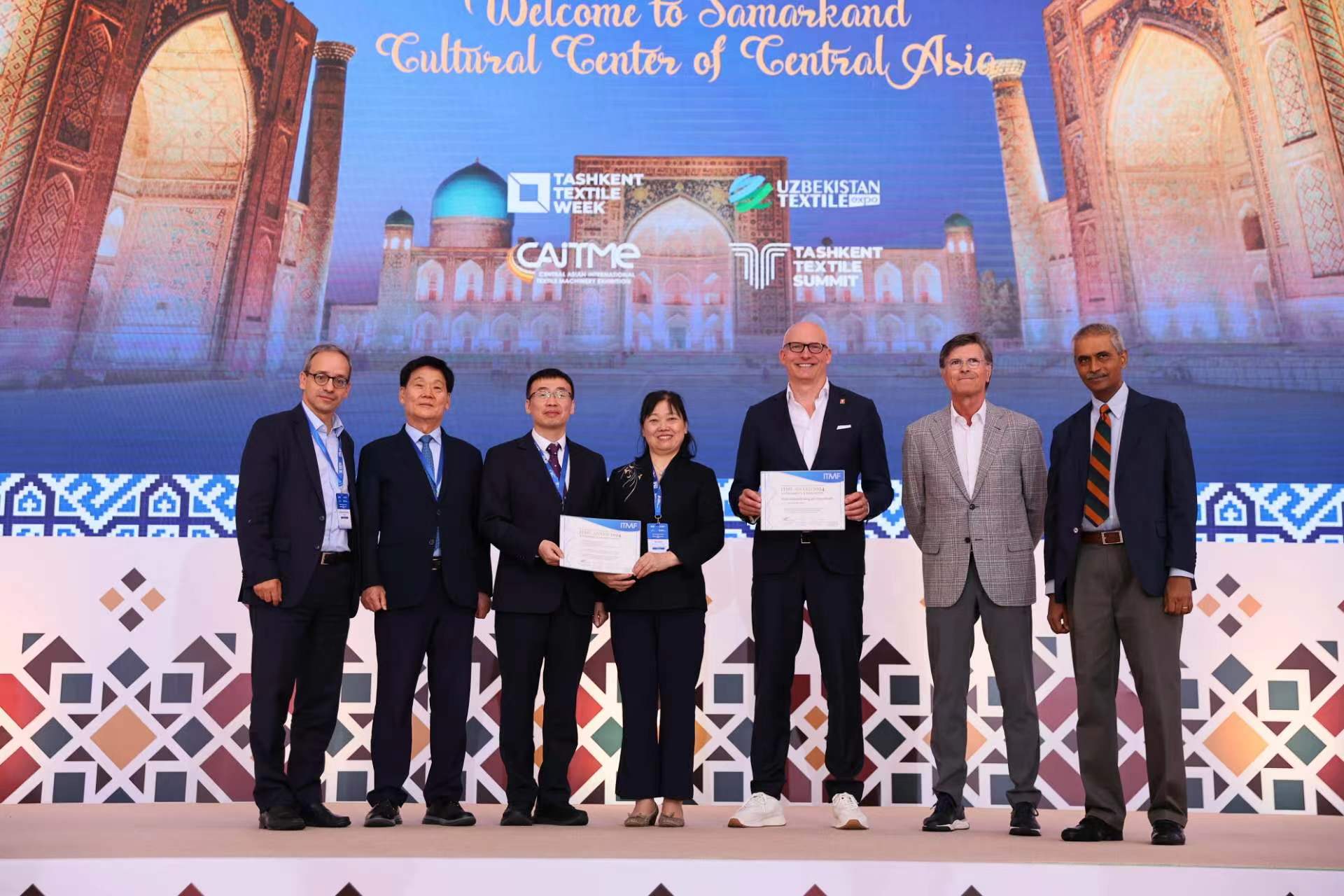 9月10日,2024國際紡織製造商聯合會年會暨國際服裝聯盟時尚大會在烏茲別克斯坦舉行。由江蘇國望高科纖維有限公司、北京服裝學院、江蘇斯爾邦石化有限公司、江蘇新視界先進功能纖維創新中心有限公司、安踏體育用品有限公司等單位申報的《碳循環:從二氧化碳到聚酯纖維》榮獲“國際紡聯可持續和創新獎”,這是2024年中國唯一獲此獎項的項目。